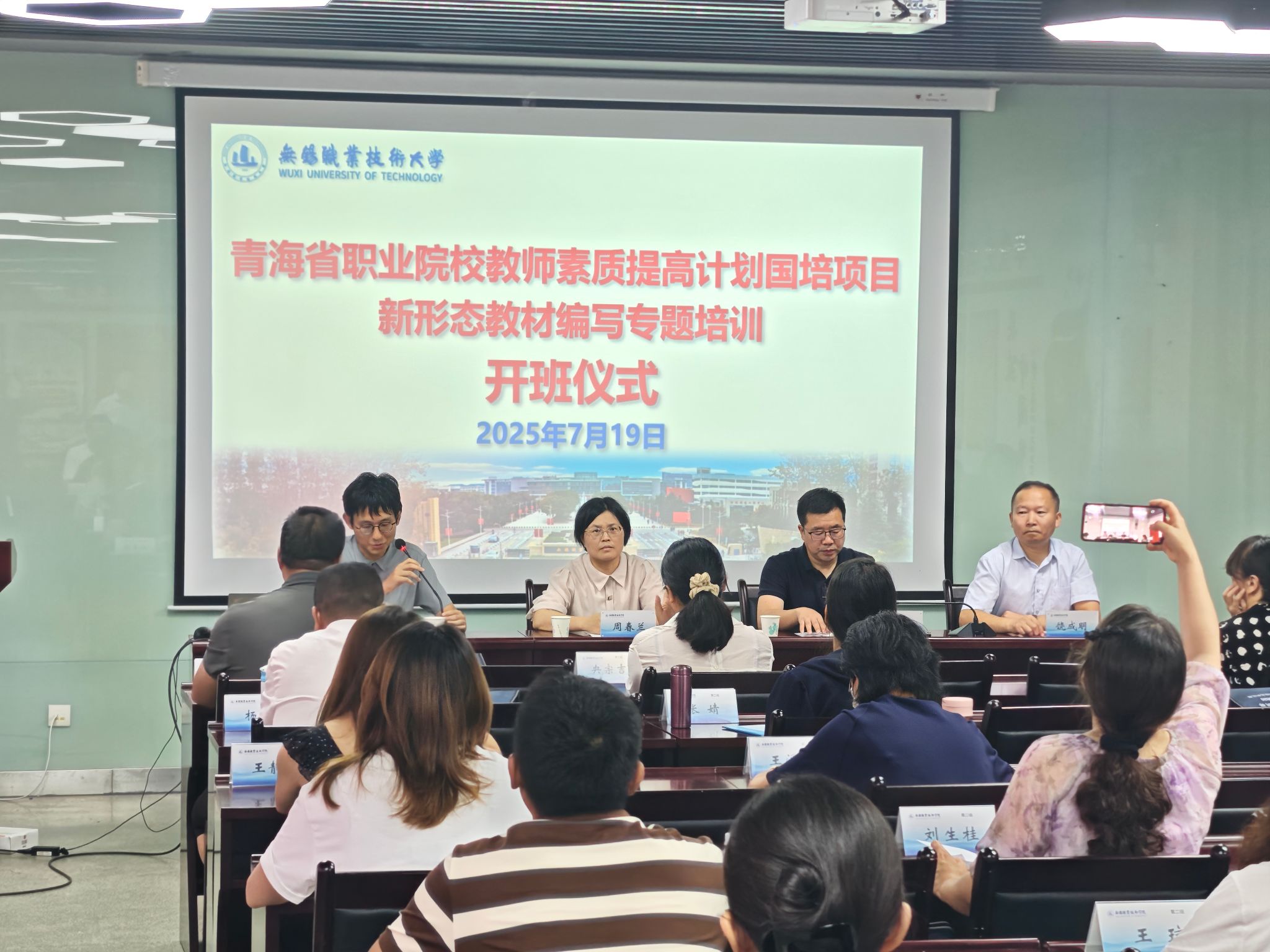 7月19日,青海省“新形态教材编写专题培训”在我校开班。党委委员、宣传部部长周春兰、机械工程学院和继续教育与培训部等相关负责人,以及来自青海的40名专业带头人、专业教师参加了开班仪式,会议由机械工程学院副院长曹澍主持。