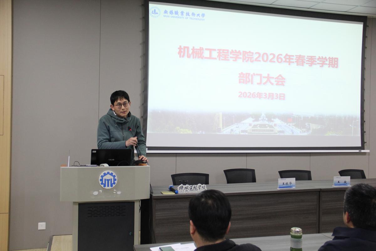 会议最后,王振华作总结发言。他指出,2026年是“十五五”规划的开局之年,更是学校成功升格为无锡职业技术大学后,推进职业本科教育高质量发展的关键时期。他强调,全院上下要深刻领会学校党委确立的以“人工智能+变革”为主题,以无锡职业技术大学建设和第二期国家“双高计划”建设为抓手的发展战略,坚持立德树人根本任务,通过深化产教融合、科教融汇,实现智能制造专业集群的整体升级,在技术学科、AI+制造等重点领域统筹推进改革创新。他号召全体教职工同心同德、同向发力,在各项工作中争当表率、争做示范,以昂扬的斗志和务实的作风,共同谱写机械工程学院发展的新篇章。